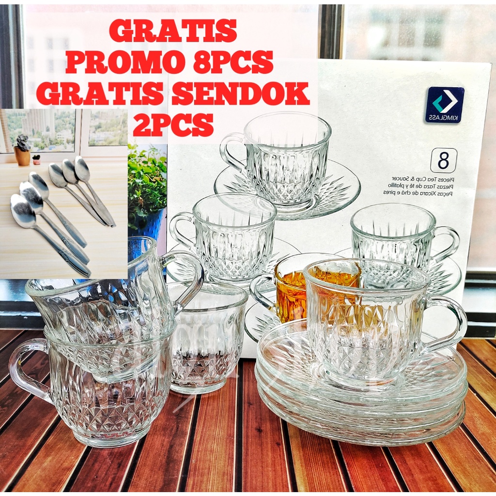 This set is perfect for hosting guests in your home, or for enjoying a cup of coffee with friends and family. The set includes 8 elegant coffee glasses and 8 small plates, making it the perfect addition to any kitchen.